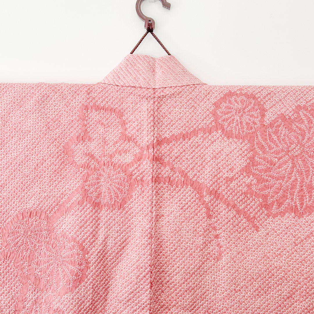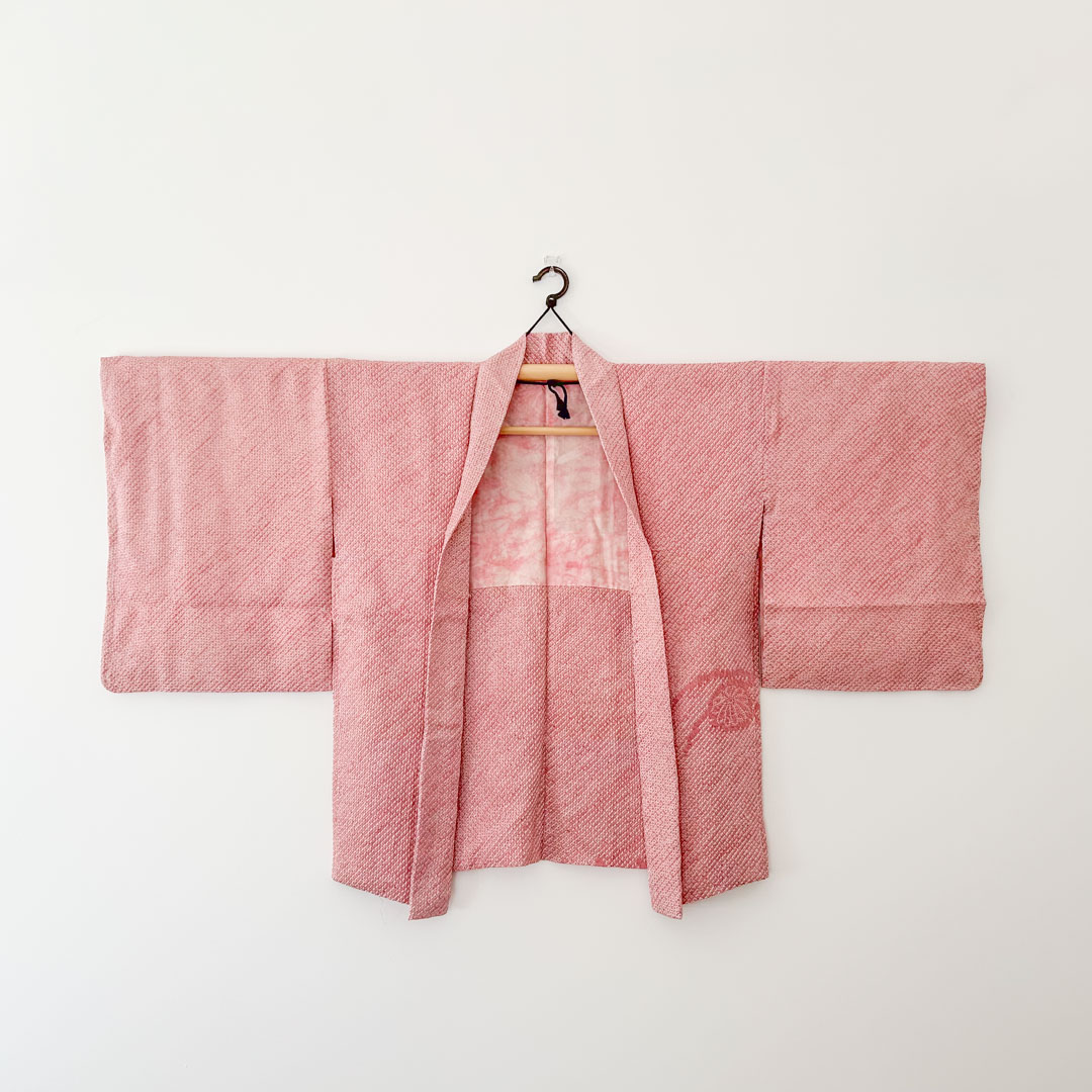 Haori vintage japonais – soie rose pâle à motifs floraux