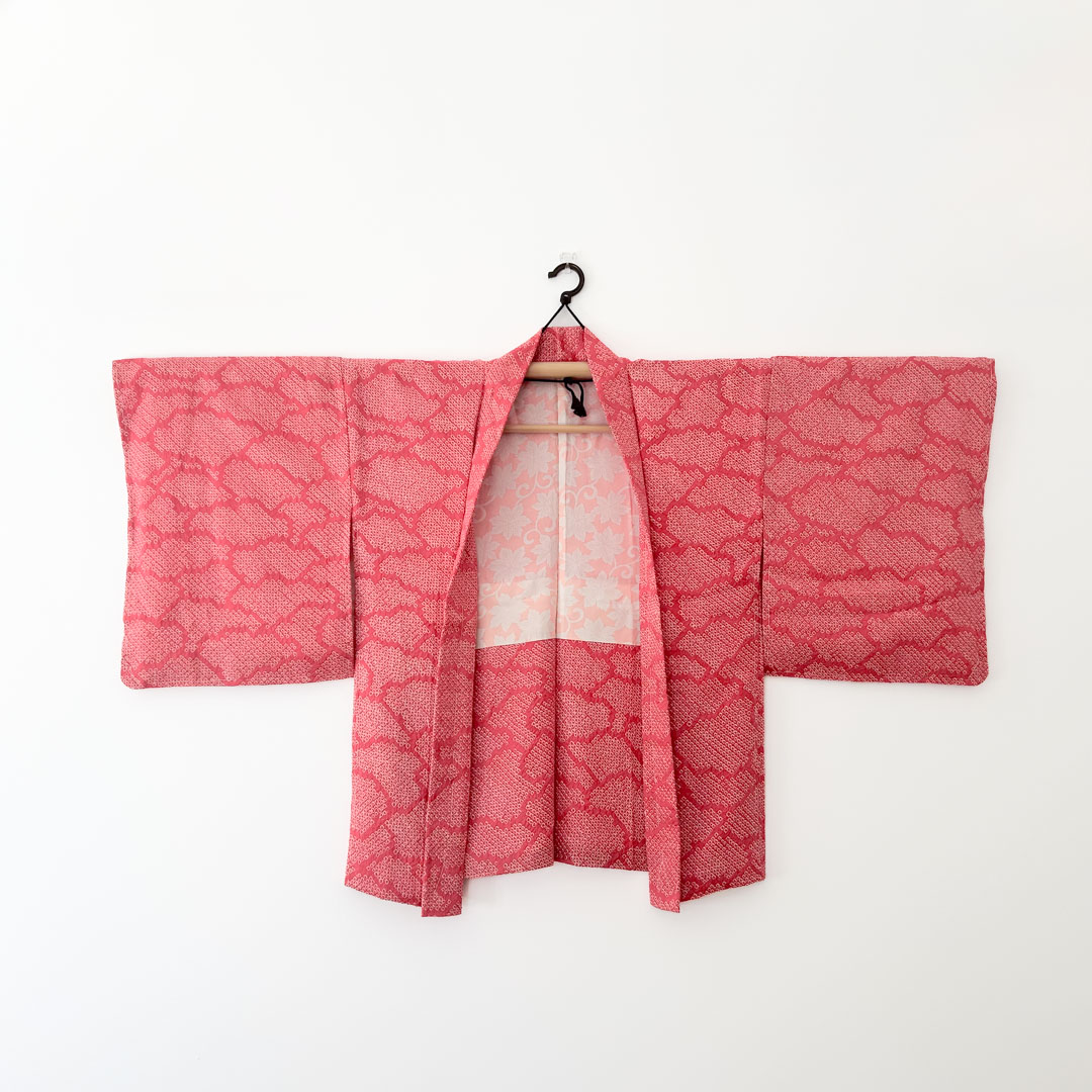 Haori japonais – rose lumineux à motif de nuages & doublure florale