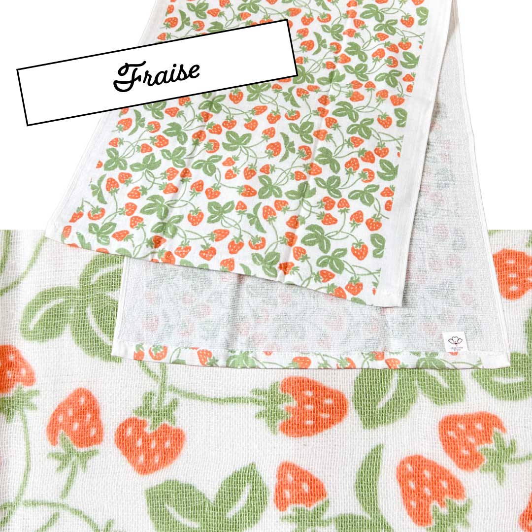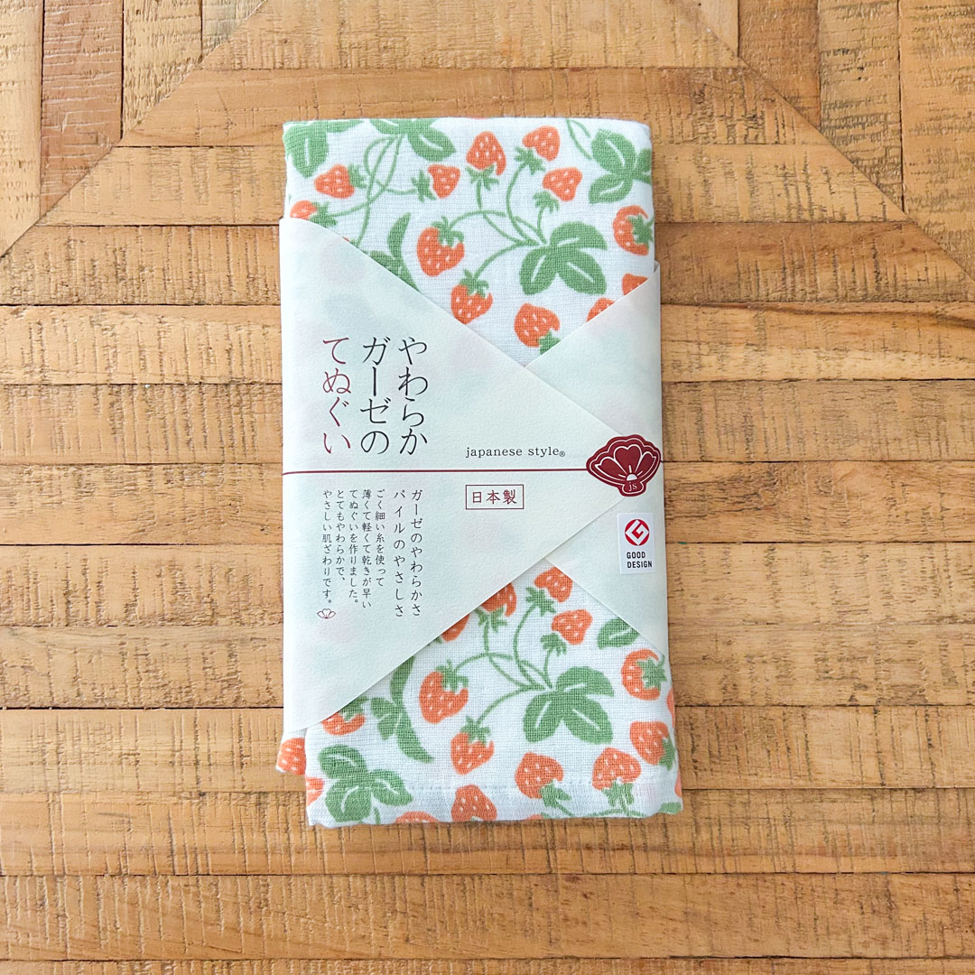 Tenugui japonais premium Fraise – Serviette douce en gaze de coton et éponge