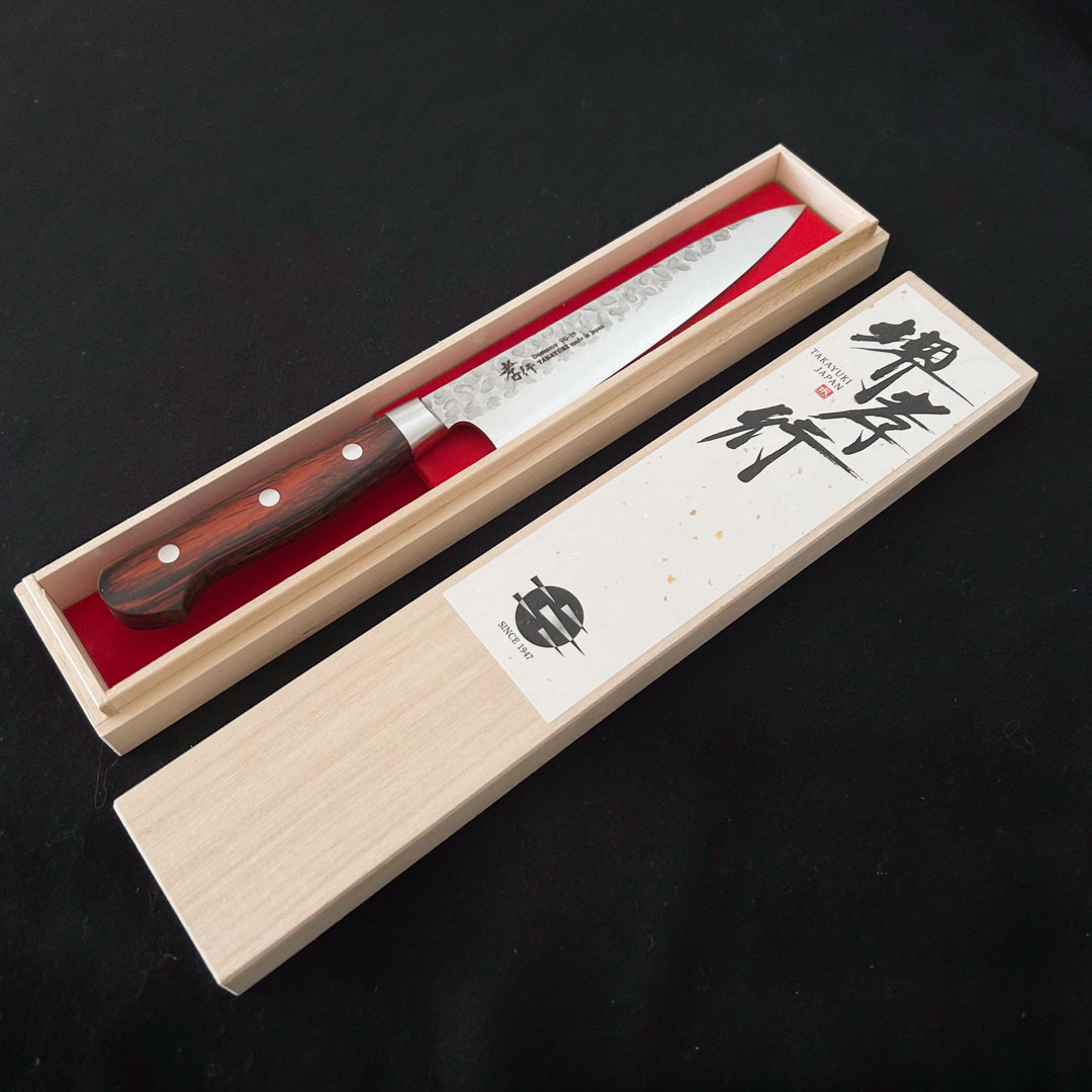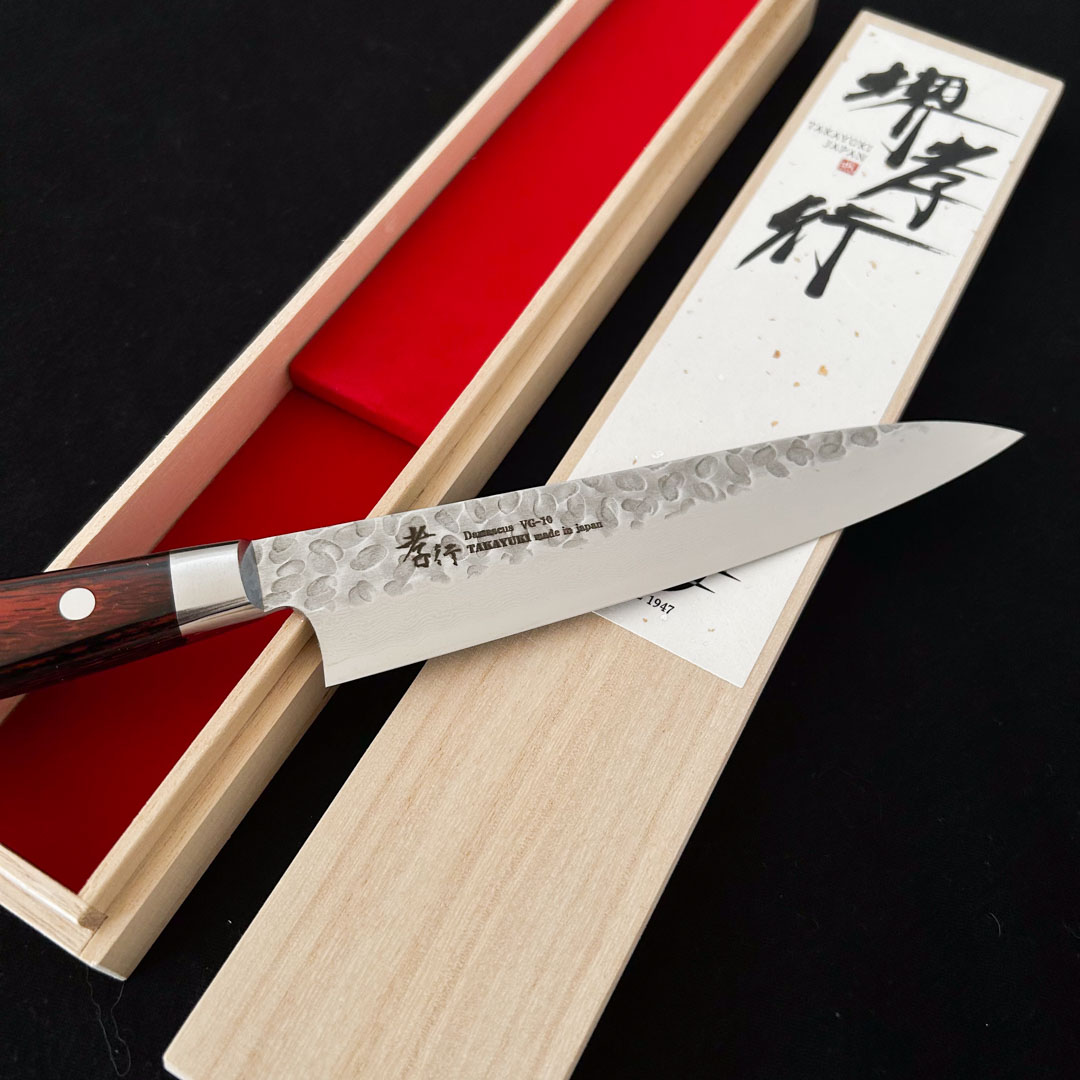 Couteau japonais Sakai Takayuki Petty 150mm – Acier VG10 Damas martelé et manche Acajou