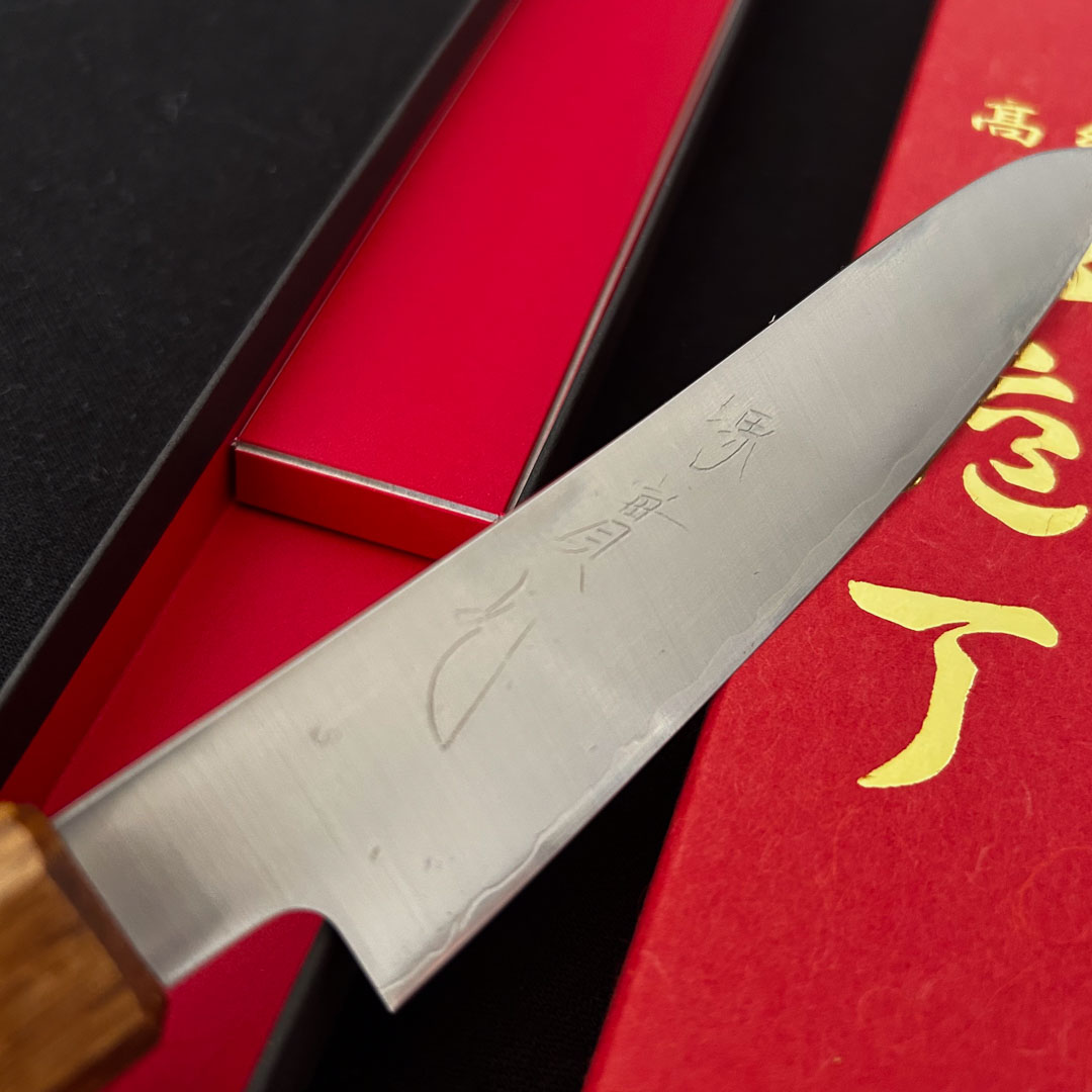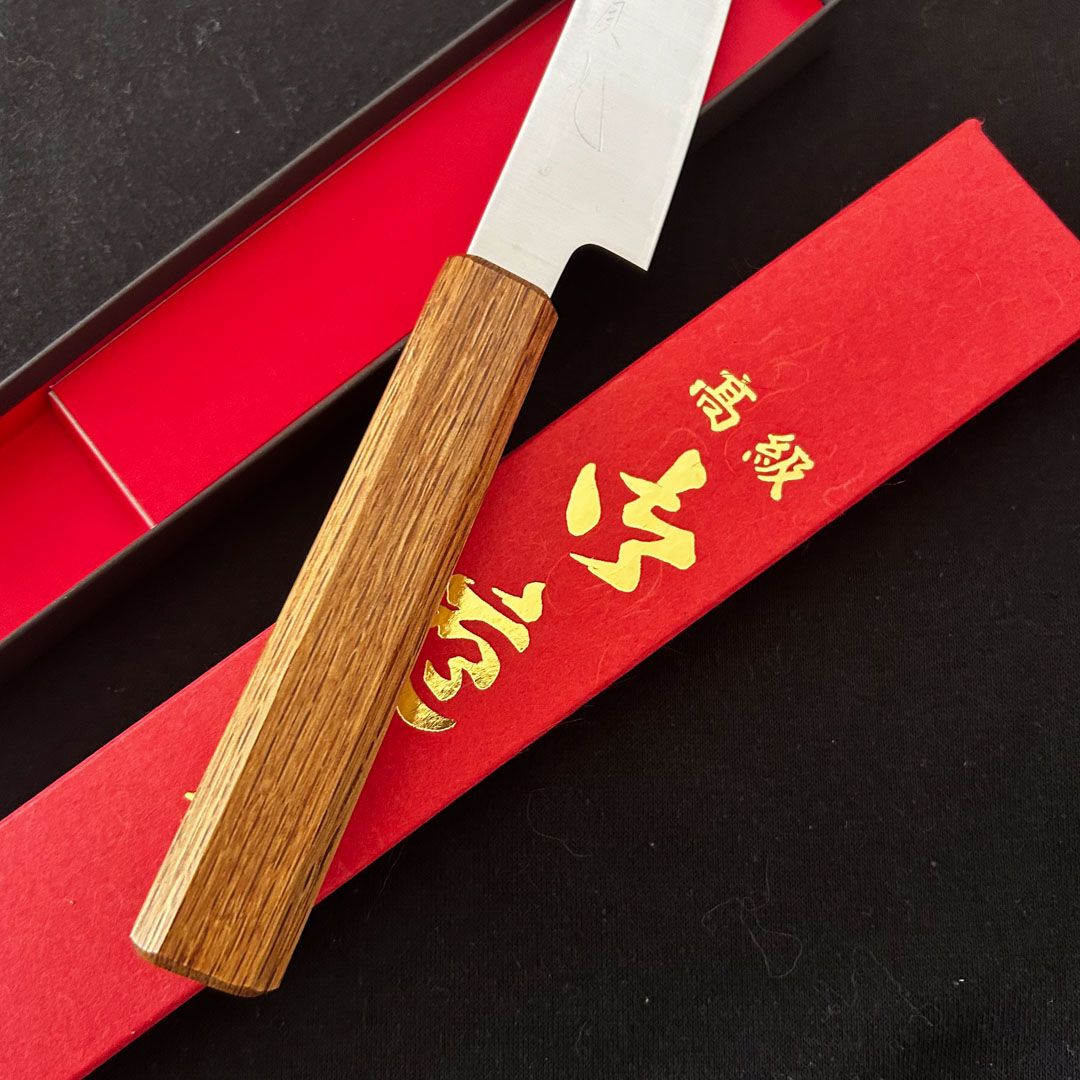 Forgé par la célèbre maison Jikko Hamono à Sakai — berceau historique de la coutellerie japonaise depuis plus de 600 ans — ce couteau de type Wa-Petty se distingue par son élégance épurée et sa performance de coupe exceptionnelle.