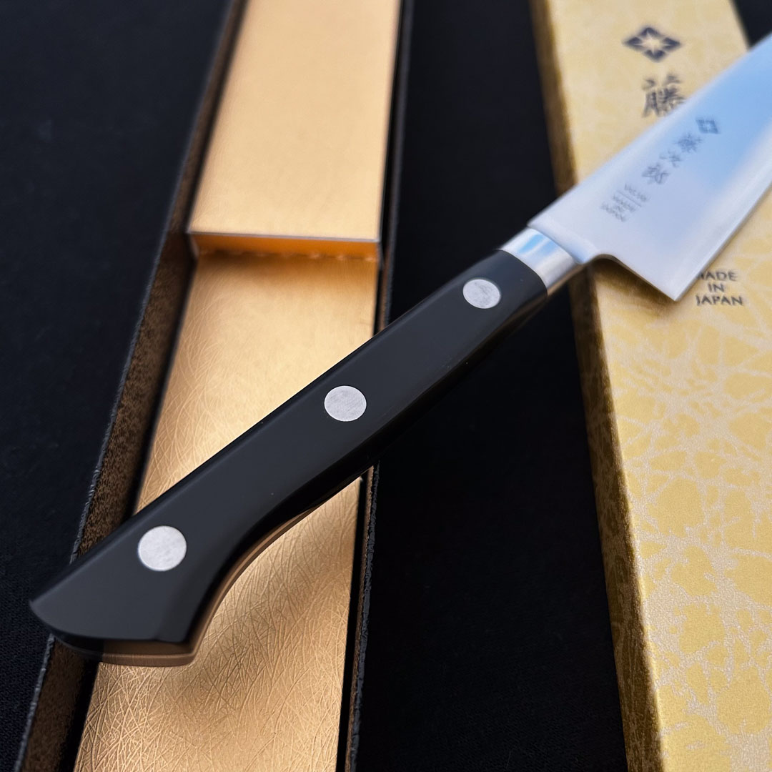 Fabriqué à Tsubame-Sanjo, haut lieu de la coutellerie nipponne, ce couteau de type Petty (petit couteau universel) est l’outil indispensable pour tous vos travaux de précision. Sa lame de 120 mm est parfaite pour éplucher, sculpter et découper avec une netteté incomparable.