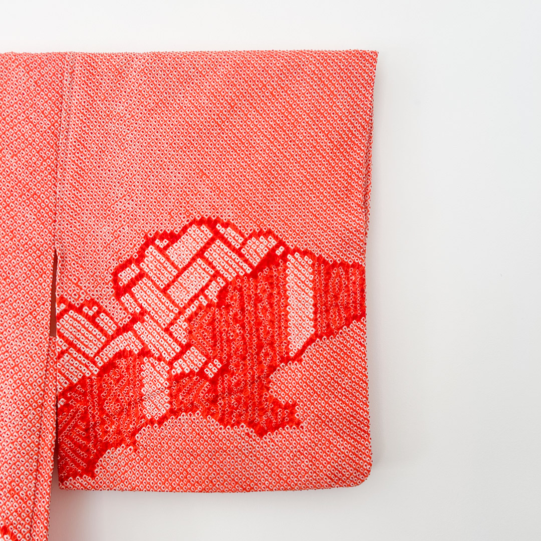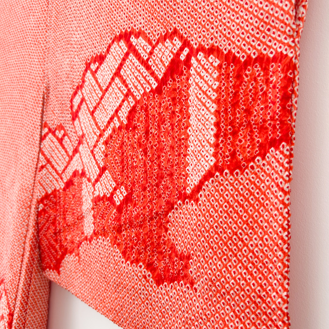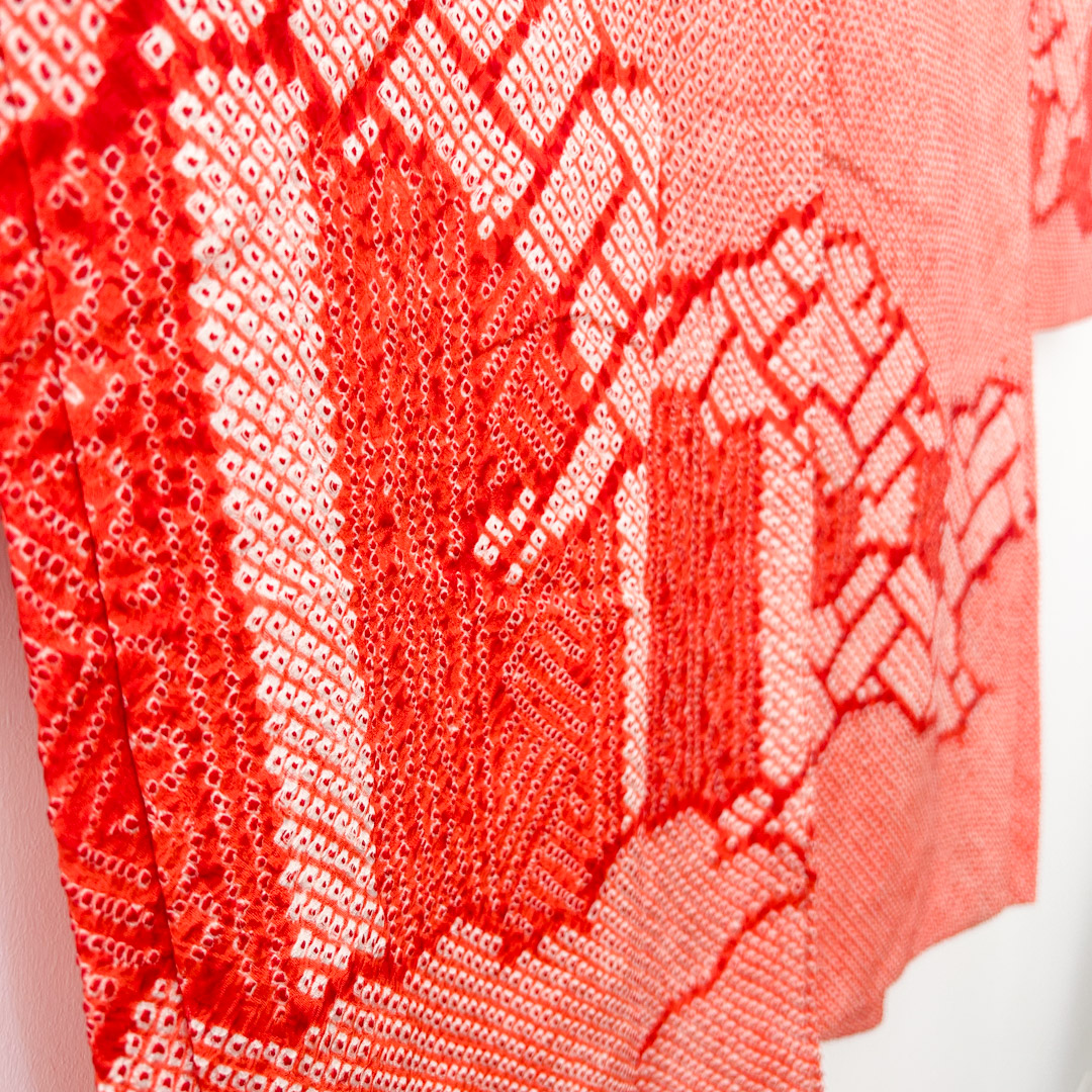 Laissez-vous captiver par l’intensité lumineuse de ce haori vintage japonais en soie rouge vif.