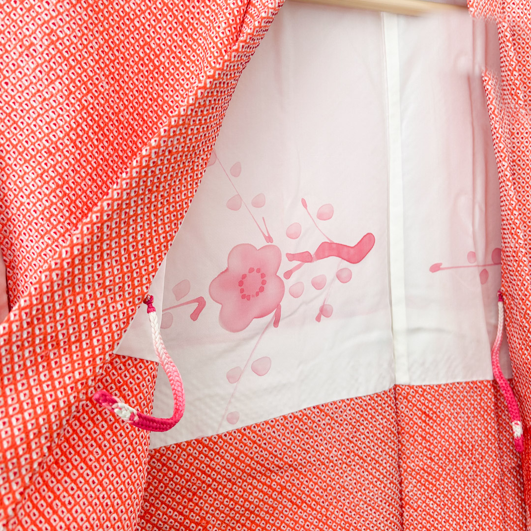 La doublure intérieure révèle un dessin raffiné de fleurs de prunier (ume), motif traditionnel évoquant la grâce, la résilience et la promesse du printemps.